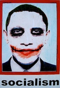 After the success of Christopher Nolan’s THE DARK KNIGHT (2008), featuring Heath Ledger’s knockout performance as an evil nihilist clown, clownface began to appear in political propaganda — as a threat, not played for laughs.