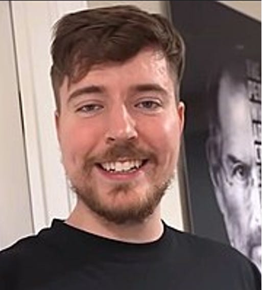 Why does the grin in many photos of MrBeast generate an “uncanny valley” effect on the observer? Because a forced, rigid smile that is worn like a mask does not convey warmth or sincerity. A “painted-on” smile that doesn’t reach the eyes may also suggest dissociation or personality disorder — though that isn’t automatically the case. (Image source: Wikipedia)