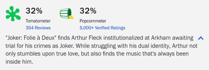 JOKER: FOLIE A DEUX (2024) — the anticipated sequel to the scary-clown hit movie JOKER (2019) — bombed. Why?